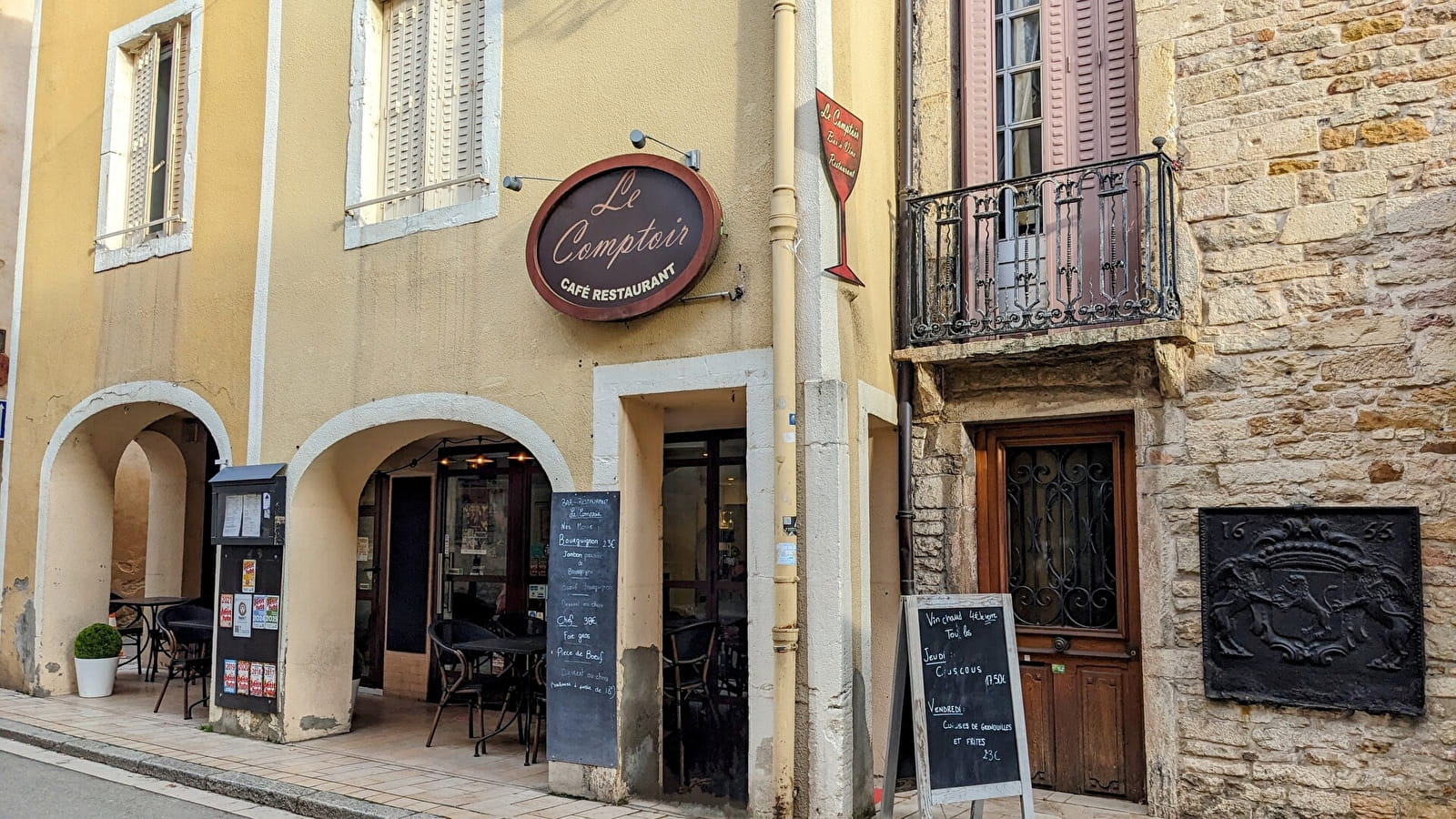 Right in the centre of Cluny, Le Comptoir is discreetly revealed behind charming arcades housing a pleasant terrace, particularly popular in fine weather.