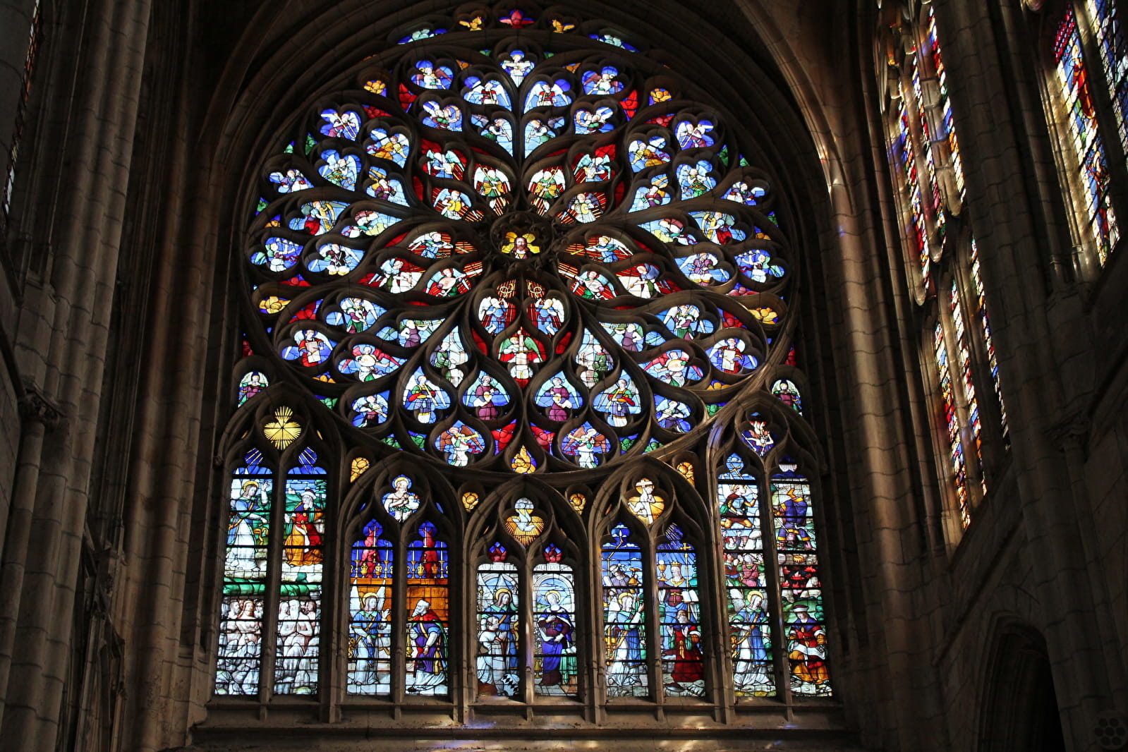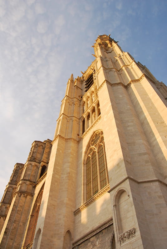 Around 1130, at a time when Romanesque buildings were springing up everywhere, an innovative master builder created a large cathedral in Sens, with a simple, continuous volume, consisting of a central nave and two side aisles featuring a revolutionary vaulting concept: the ribbed crossing. Between 1490 and 1517, the architect Martin Chambiges built a large transept in flamboyant Gothic style.