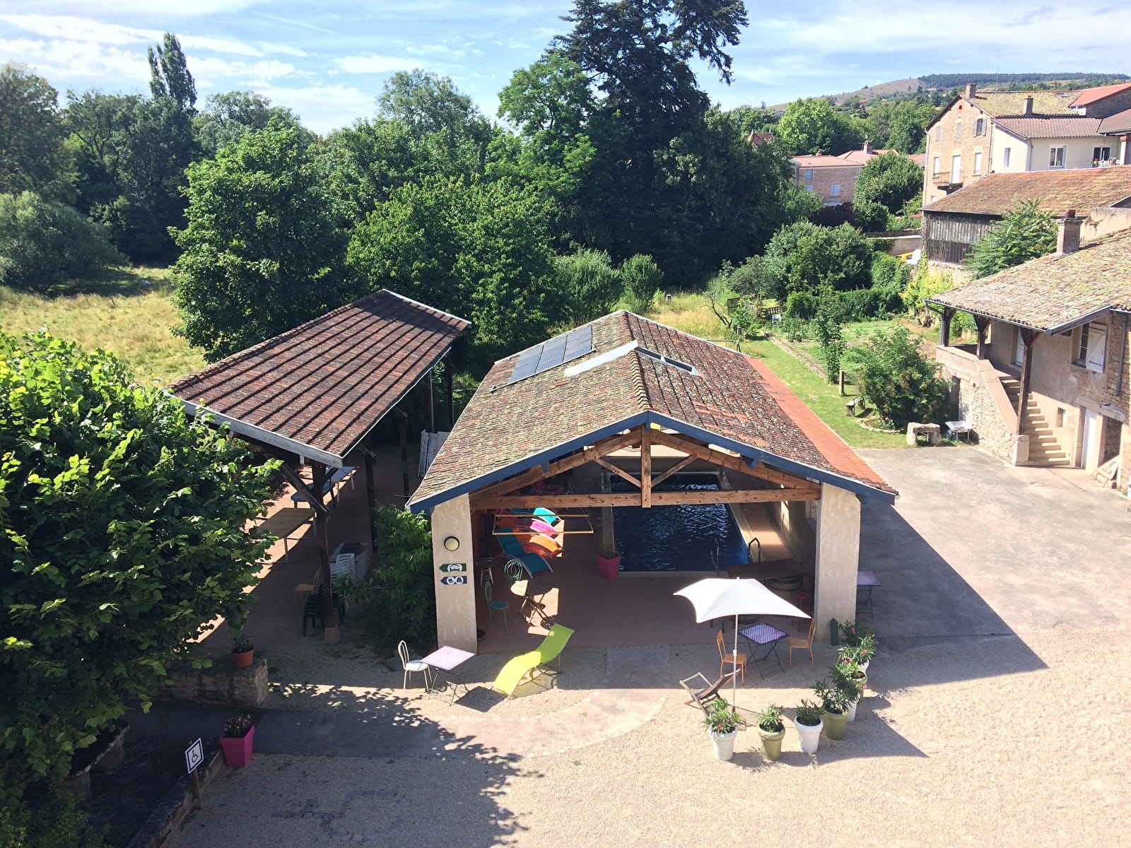 The Grand Gîte de la Roche Bleue is located in a third place where several activities coexist: coworking, hosting seminars, events, etc., in a spirit of exchange and respect for our environment (we are certified by the European ecolabel)... So it's not unusual to find Séverine, the owner, or Laurent, the caretaker, watering the vegetable garden in the early hours of the morning, looking after the chickens, the mail and, in season, the swimming pool... It's a lively, peaceful place in the heart of a quiet village, which is why it's not suitable for parties or wedding-type events.